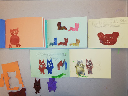 Bär im Heft, Nashorn auf dem Beutel - wir zeichnen, schneiden, stempeln